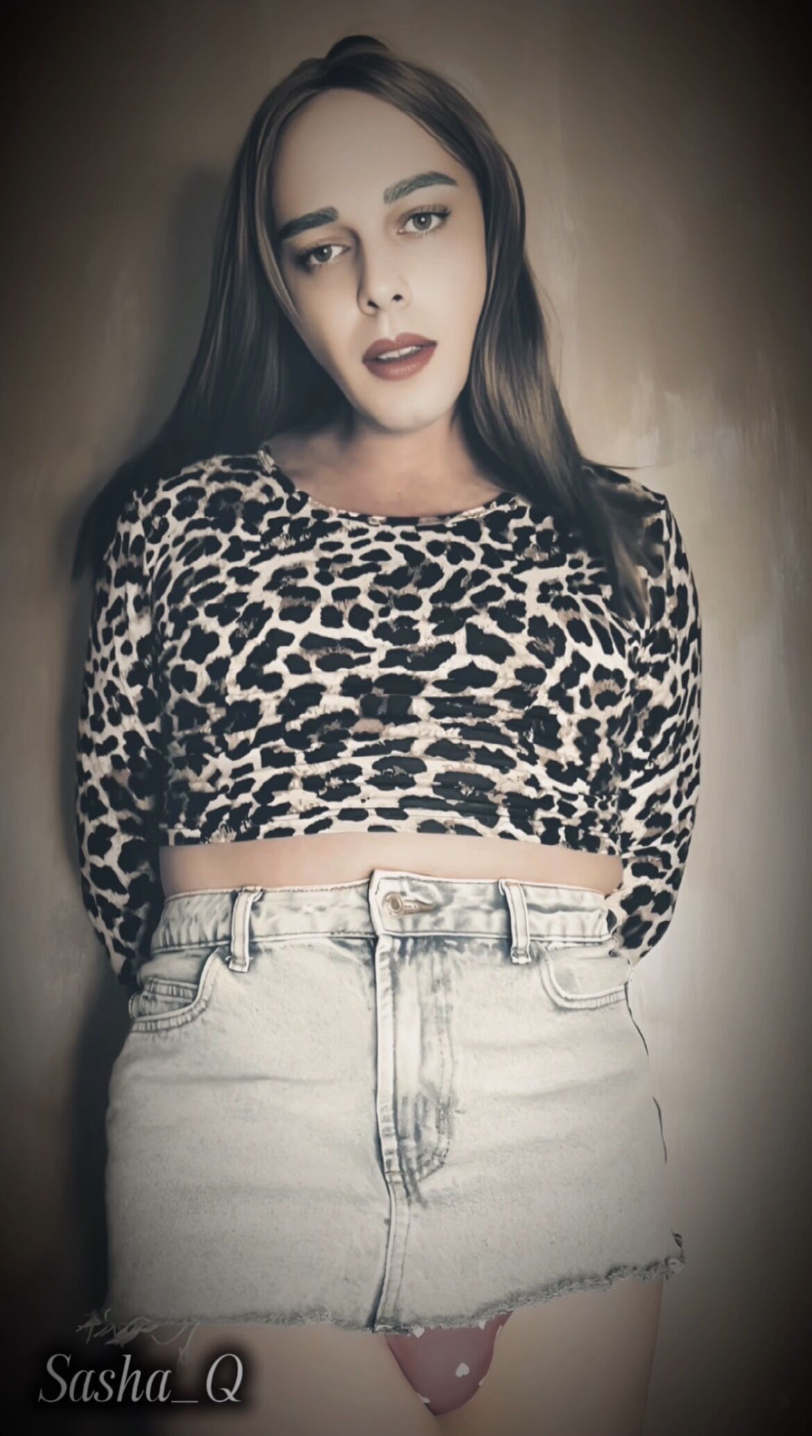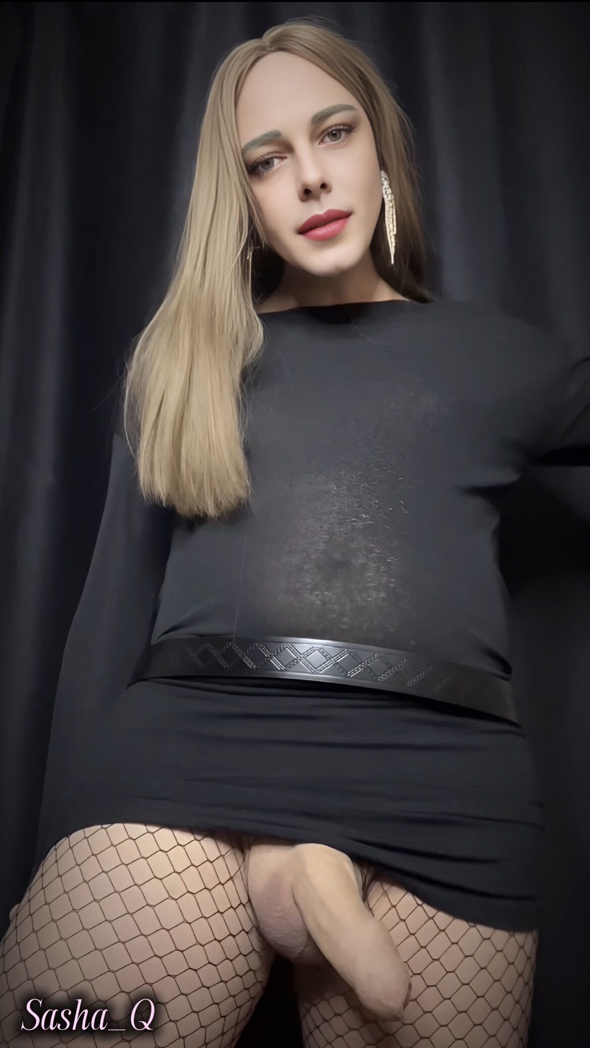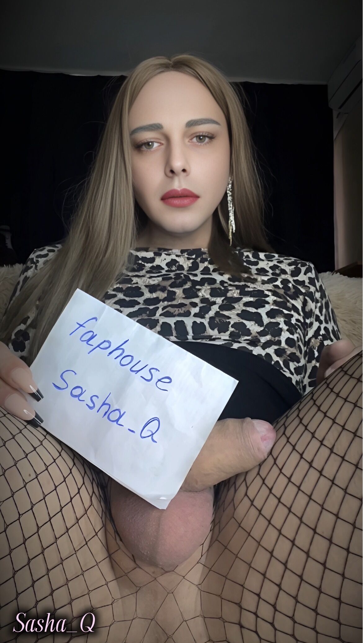 Sexy Trans bitch Sasha Q jerks off dick and cums from masturbation